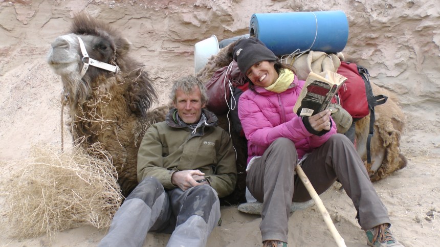 “Passports!”. “What is your purpose here?” The English speaker is a heavily built Uighur called Illias. His tone relaxes as it becomes clear we are just a weird couple strolling inexplicably around the mountains and not the vanguard of a third world war. The others, both Han and Uighur, mill about smoking and taking endless photos of us and the tent. They have driven over 250kms from Khotan and want us to return there with them. We protest, argue and cajole for over an hour in the freezing cold but apparently we are in a sensitive border area. We scoff at this for the nearest border is that with disputed Kashmir about 180kms away over mountains we cannot even begin to cross. Well, it´s for our own safety then, S1430015 (1024x576)there are dangerous animals. We laugh at this and I mime staving off a sheep attack. Why this place is sensitive remains obscure to us, only the barrier across the track suggesting something´s going on in the valley we want to follow. In the end it´s our camel who thwarts their plans. She won´t go in the boot and so they´ll have to leave us here. But we are not allowed to continue on this route and we know that in the morning, as we retrace our steps, again, there will be phonecalls criss-crossing China and our low-level agreement with Jackson and the Pishan police will be off. Ayelen is close to tears with frustration and anger. I am filled with remorse at having brought her here. This hassle with authorities has now become the central theme of our journey and I cannot even film it. The only positive thing seems to be that they haven´t actually closed us down completely.